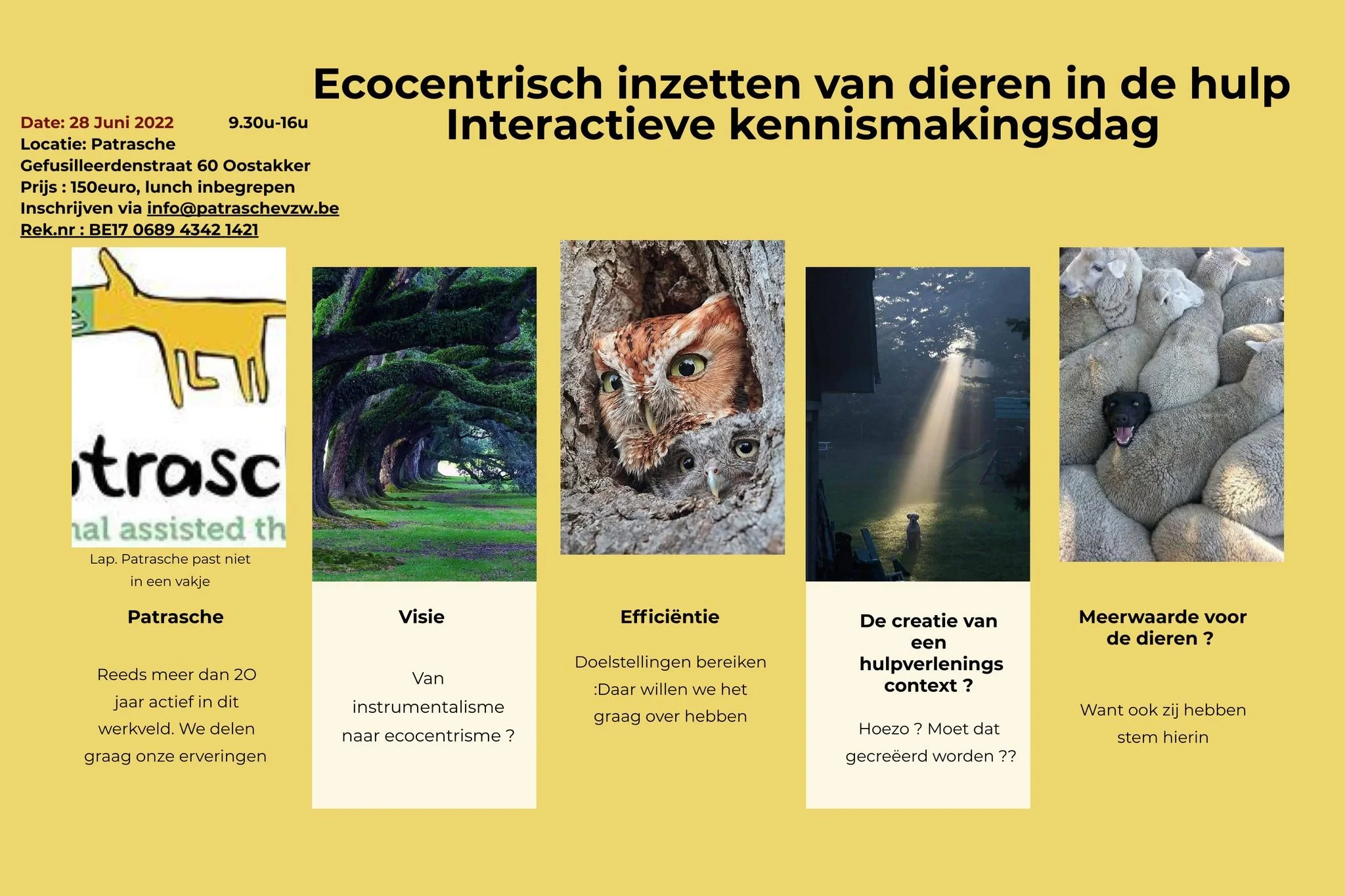 Interactieve info dag : Ecocentrisch inzetten van dieren in de hulpverlening Katrien Kintaert15 juni 2022 Facebook0 Twitter LinkedIn0 Reddit Tumblr Pinterest0 0 Likes
